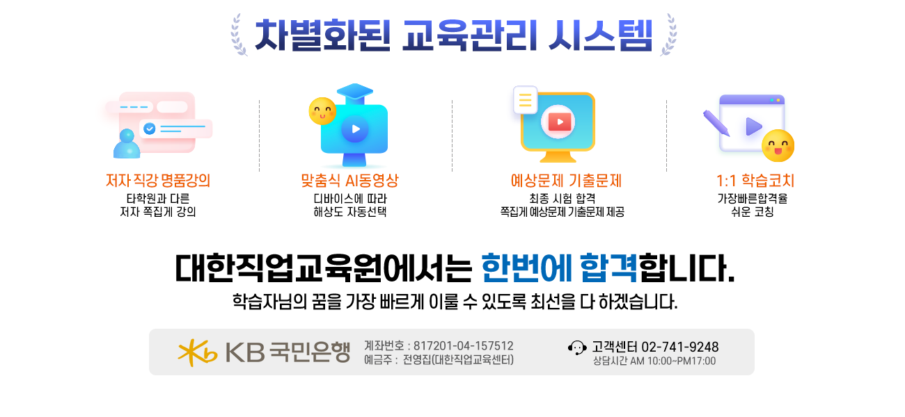 빠른 합격을 제시하는 교육원의 특화된 공부방법으로 지금 준비하세요